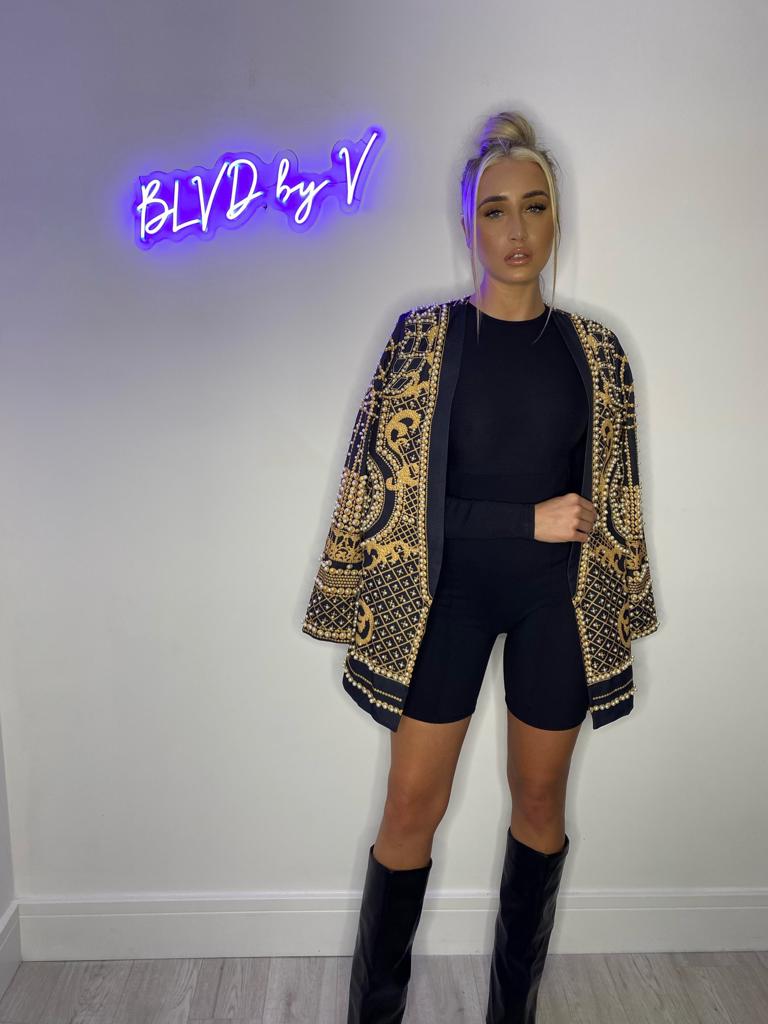 I need this in my lifeI mean... have you ever laid your eyes on a more beautiful blazer? With this cut out detail and the dripping Diamond effect, we find it hard to believe that you have.