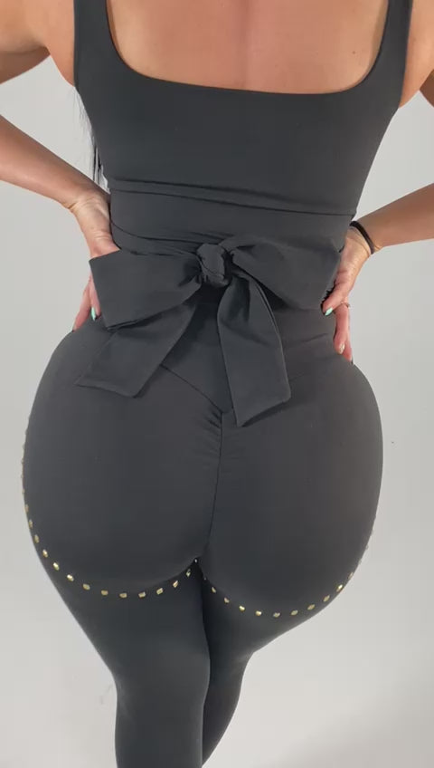 - She has THE SNATCHED WAIST ILLUSION created by the stud detail